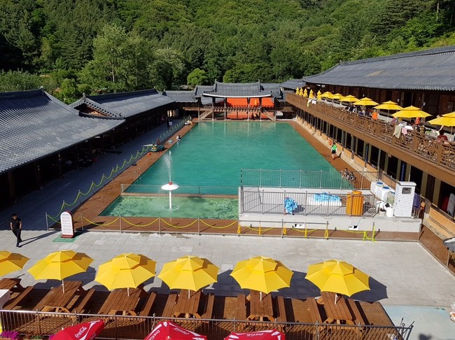 유아와 함께 물놀이를 즐기기 좋은 한옥형 펜션 수영장입니다. 평상에서 바비큐를 즐길 수 있고, 하루 머물며 물놀이와 식사를 함께하기 좋아 서울 근교 당일 여행지로 알맞습니다.